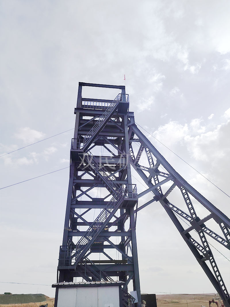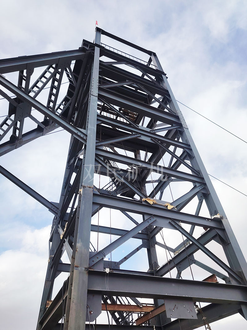 斜撐式永久井架主要特征和優(yōu)點: 單斜撐式井架是隨著落地式多繩地上計技術(shù)發(fā)展而產(chǎn)生的,具有造型獨特,結(jié)構(gòu)簡單,受力合理,工程量少,經(jīng)濟(jì)實用,技術(shù)進(jìn)步的特點。
