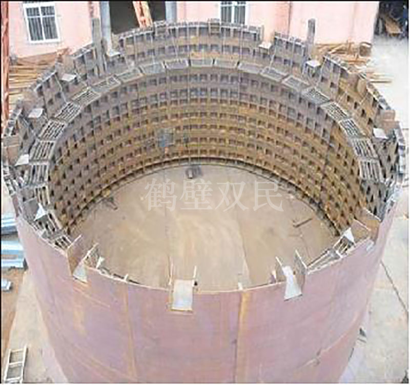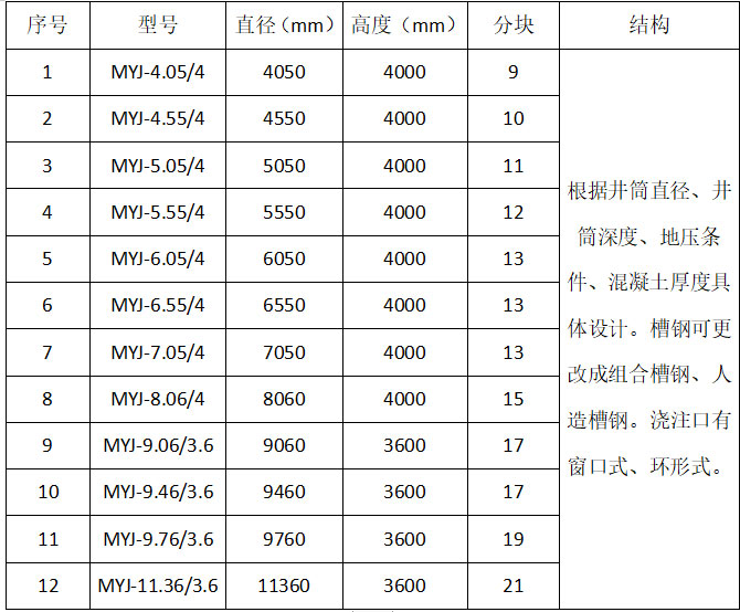 立井整體移動金屬模板主體結(jié)構(gòu)為多塊圓弧形金屬板塊連接形成單縫式環(huán)形結(jié)結(jié),并由數(shù)層圓環(huán)連成只有一個收縮口的剛性模板。