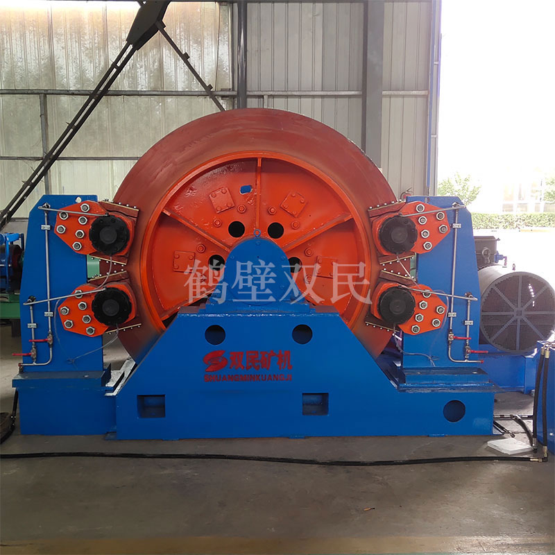 提升機(jī)主要由主軸裝置、調(diào)繩機(jī)構(gòu)(雙筒)、盤形制動(dòng)裝置、深度指示器、減速器、潤滑站、測(cè)速發(fā)電機(jī)裝置、聯(lián)軸器、電動(dòng)機(jī)、操縱臺(tái)、液壓系統(tǒng)及電氣控制系統(tǒng)等部件組成。