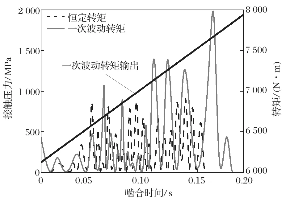 圖9 恒定轉(zhuǎn)矩與一次波動轉(zhuǎn)矩接觸壓力的對比